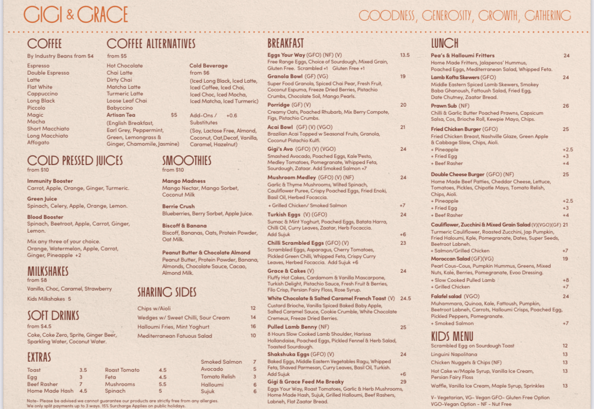Welcome to Gigi & Grace, a charming café nestled in Werribee, where delectable cuisine meets a vibrant atmosphere. The menu showcases a delightful array of options, guaranteeing satisfaction for all palates.